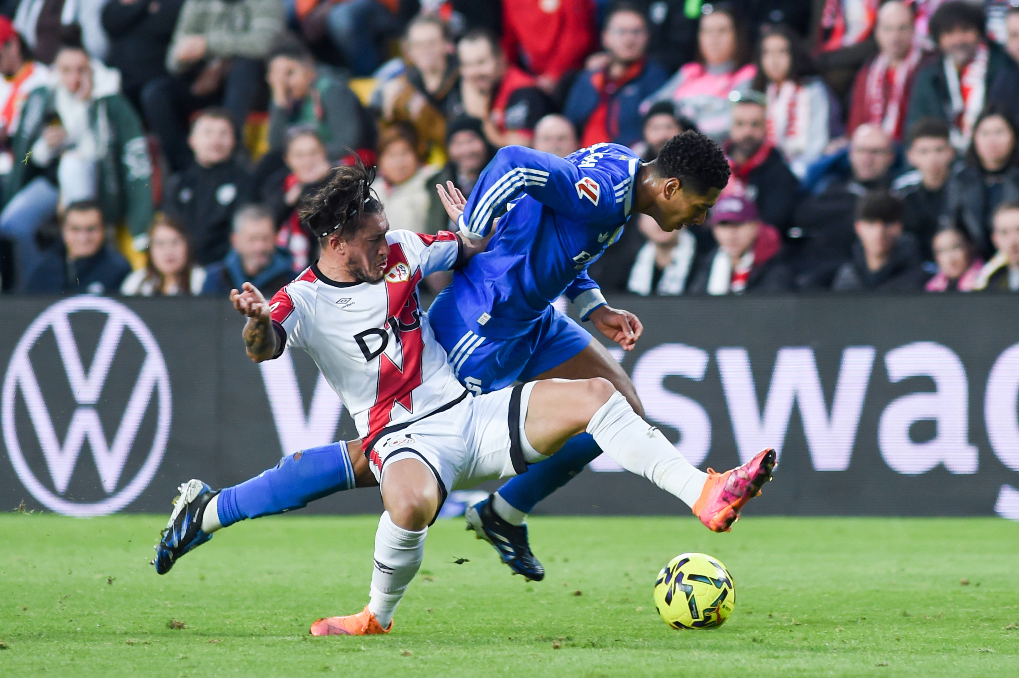 11月9日,皇家马德里队球员贝林厄姆(后)与巴列卡诺队球员埃斯皮诺在比赛中拼抢。新华社发(古斯塔沃·巴连特摄)其他比赛中体育赛事直播,皇家奥维耶多客场0:1不敌毕尔巴鄂竞技,巴伦西亚主场1:1战平皇家贝蒂斯,马略卡主场1:0征服赫塔菲。