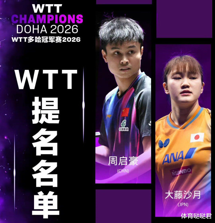 2025年12月30日,WTT寰球乒联官宣,多哈冠军赛外卡和提名公布,国乒队员周启豪和日本主力大藤沙月入围,人外卡给了卡塔尔选手瓦哈卜和艾拉,四人赢得单打履历,引起球迷珍贵。
